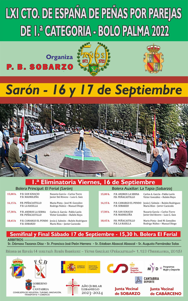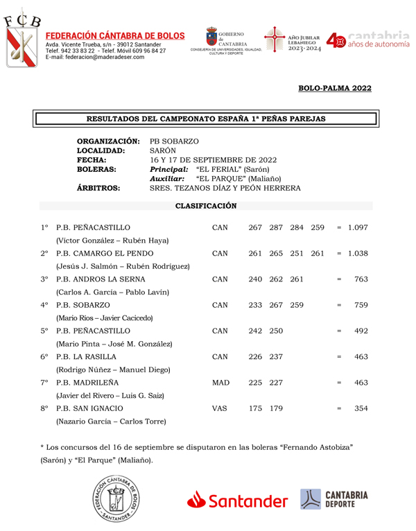 CAMPEONATO REGIONAL DE SEGUNDA CATEGORÍA PEÑAS POR PAREJAS 2022: