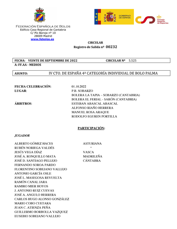 CAMPEONATO DE ESPAÑA PRIMERA CATEGORIA INDIVIDUAL 2022: