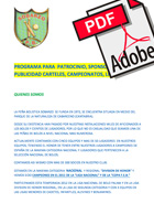 PROGRAMA PARA PATROCINIO, SPONSORIZACION, PUBLICIDAD CARTELES, CAMPEONATOS, LIGAS. |