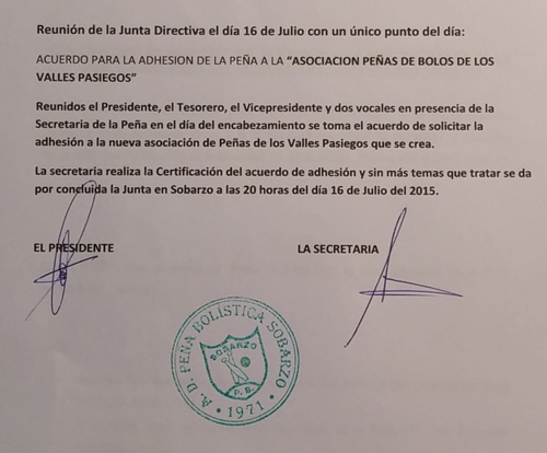 ADHESIÓN A LA ASOCIACIÓN DE PEÑAS DE BOLOS DE LOS VALLES PASIEGOS - 2015 |