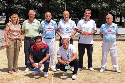 El presidente de la FCB entrego el trofeo de la Copa de la Reina al Campeón FELIX GUERRA y también entrego el Trofeo que acredita a la P.B. Quijano como Campeones de la Liga de Veteranos 2021 a su presidente D. Miguel Pérez