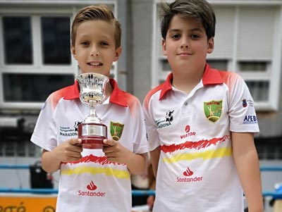 Se celebro en Villanueva Villaescusa organizado por la P.B. Marcos Maza las Finales del TORNEO APEBOL PAREJAS, en Alevines teníamos dos parejas clasificadas y gano la formada por SERGIO MANTECON y JUAN RUIZ, quedando terceros ADRIAN MERINO y DANIEL SAINZ. En Infantiles gano la pareja formada por ALEJANDRO ORTIZ y Sergio Colina.