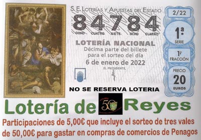 LOTERIA DE REYES, no dejo ningún premio. Los números agraciados con el Vale de 50€