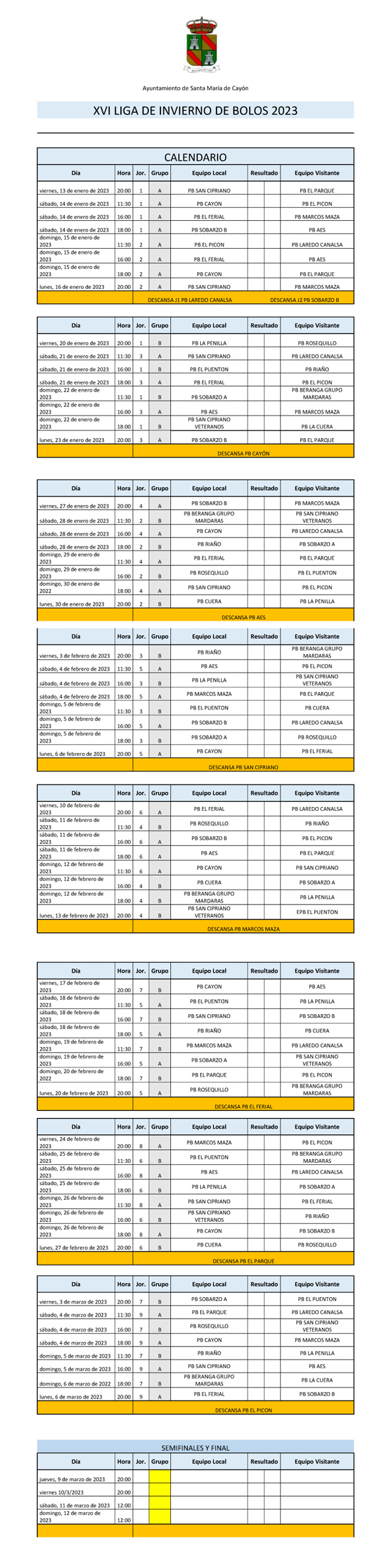 XVI LIGA INVIERNO DE CAYON, el viernes día 10 se disputaron las Semifinales de la Liga con los siguientes resultados:
