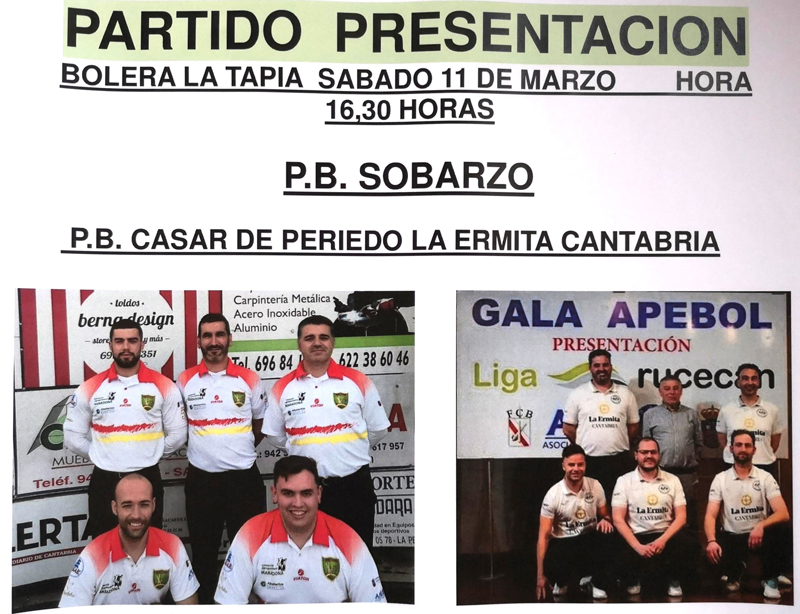 El próximo sábado día 30 se celebrarán en la Bolera La Tapia como Principal y auxiliar la Bolera el Ferial de Saron el V CAMPEONATO ESPAÑA CUARTA CATEGORIA en el que participan un total de 18 jugadores de las Territoriales de Cantabria, Territorial Vasca, Madrileña y Asturiana. Por la mañana a partir de las 9 horas tiradas en las dos boleras y por la tarde a partir de las 16 horas final en La Tapia en Sobarzo.