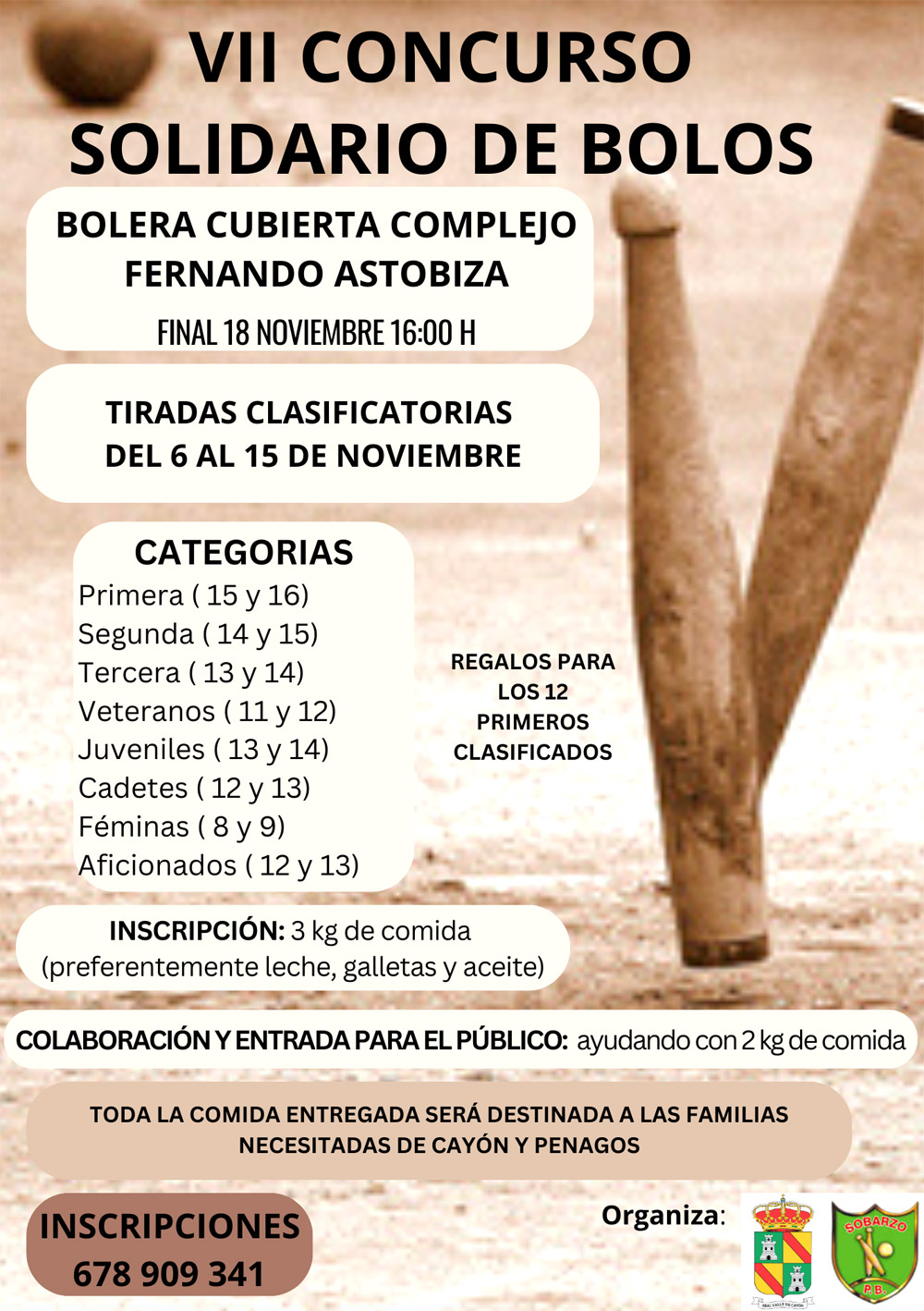 VII TORNEO SOLIDARIO BOLOS DE NAVIDAD, comenzaremos las tiradas el día 6 de Noviembre hasta el día 15 y la FINAL el 18 de Noviembre YA PODEIS APUNTAROS Teléfono 678 909 341 OS ESPERAMOS.