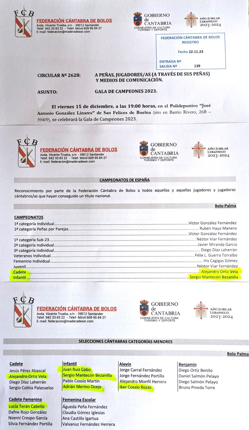 Seis jugadores de la Escuela nominados para la GALA CAMPEONES FCB que se celebrara el próximo día 15 a las 19 horas en San Felices de Buelna, nuestra enhorabuena a JUAN RUIZ, SERGIO MANTECON, ALEJANDRO ORTIZ, LUCIA TERAN, IKER COSSIO Y ADRIAN MERINO recibirán sus diplomas en la Gala Felicidades |